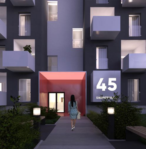 To wszystko w połączeniu ze stonowaną kolorystyką oraz spójną architekturą pozwoliło stworzyć projekt budynku mieszkalnego, który wpisując się w kontekst otoczenia może stać się ciekawym przykładem budownictwa społecznego w Bydgoszczy.