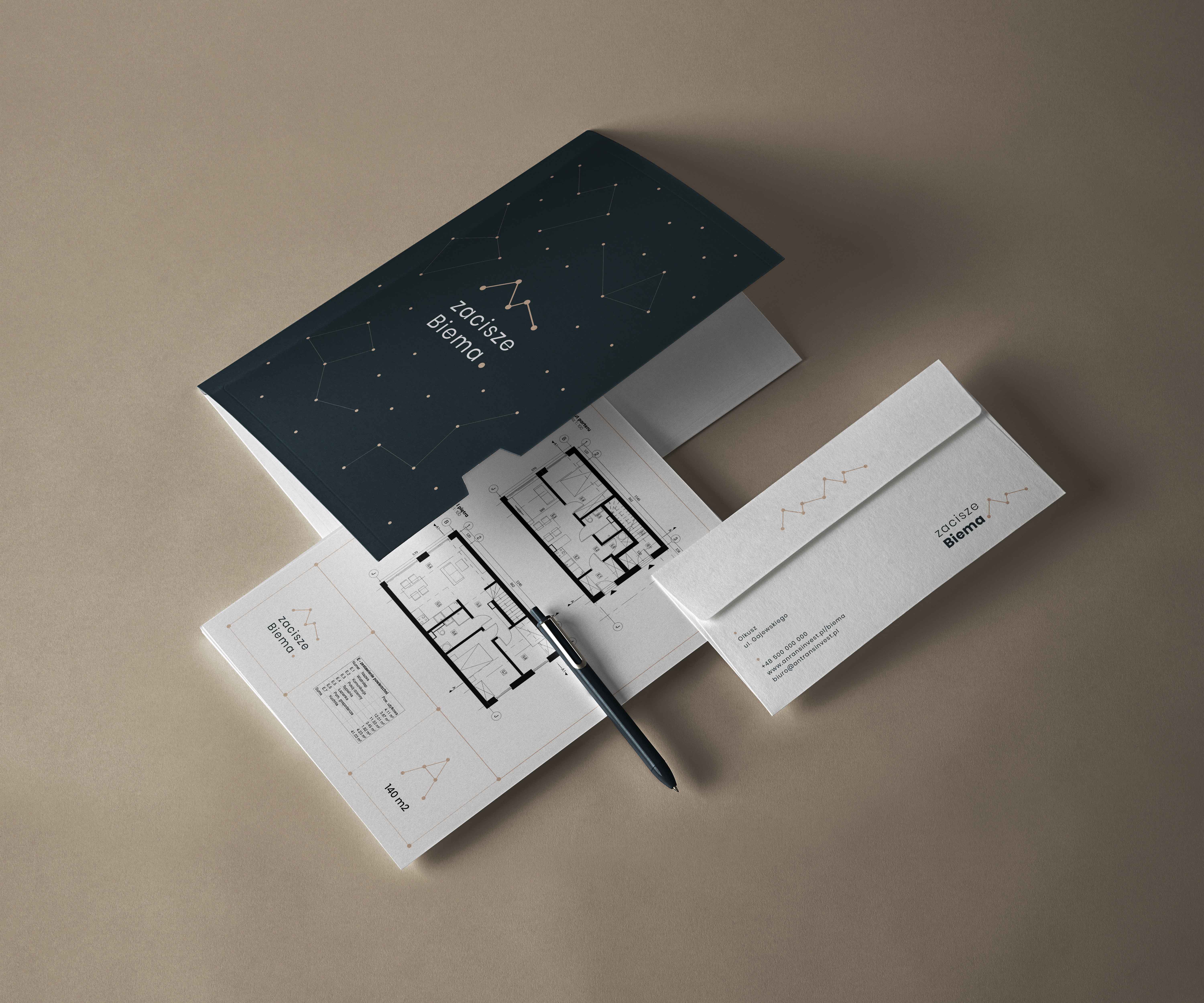 Zakres usług: projekt logo, identyfikacja wizualna inwestycji mieszkaniowej, materiały inwestycyjne, materiały marketingowe